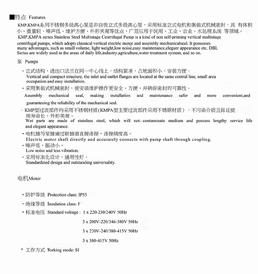 型號:南方離心泵KMP系列
