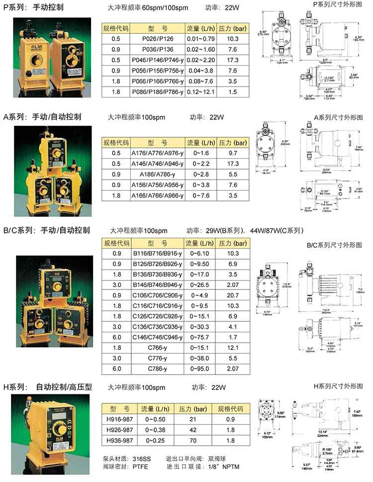型號:米頓羅電磁泵p系列,B系列,A系列,C系列,E系列