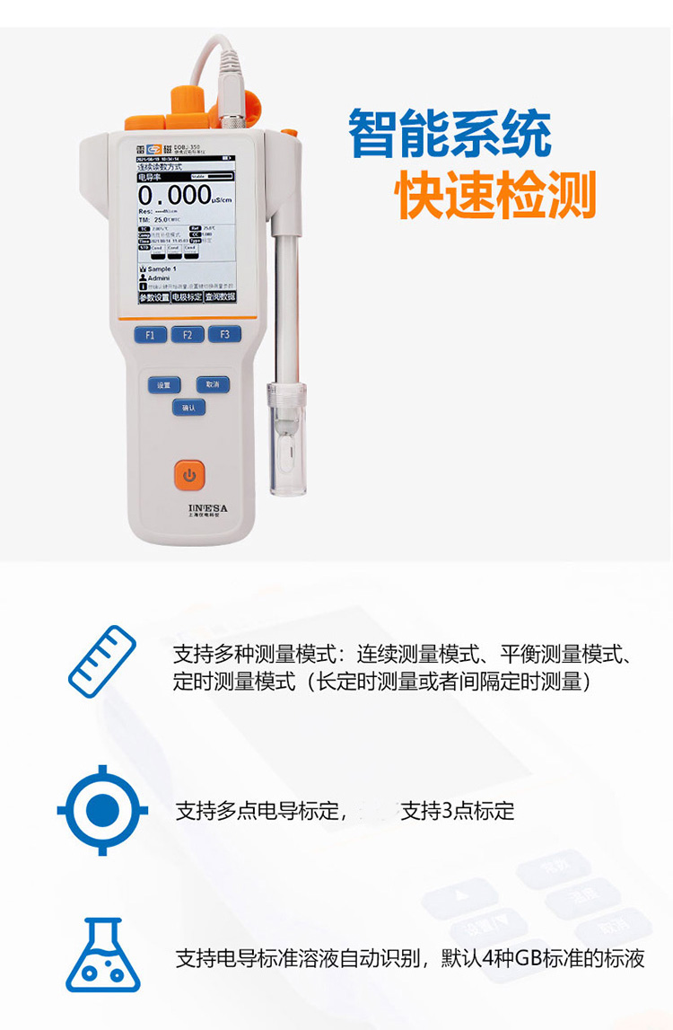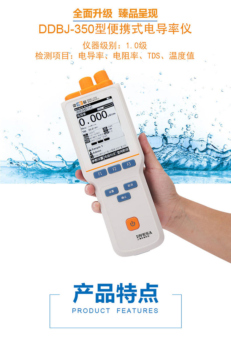 雷磁DDBJ-350型便攜式電導率儀自動手動溫度補償電導率監測儀