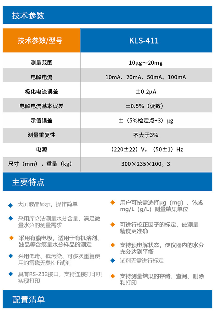 雷磁分析儀KLS-411型微量水分分析儀大屏液晶顯示自動(dòng)化程度高