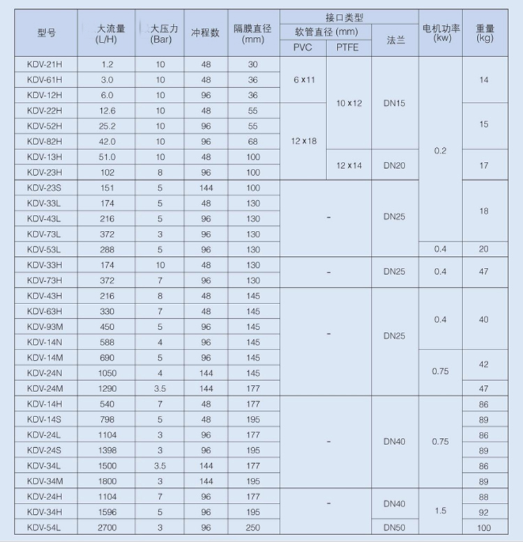 型號:KDV系列機械隔膜計量泵
