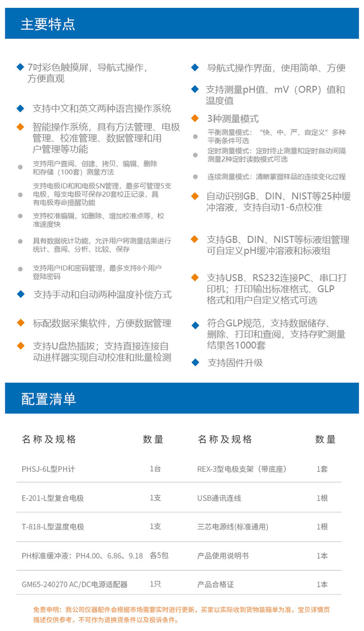 雷磁臺式pH計PHSJ-6L標配套裝 實驗室精密酸度檢測儀