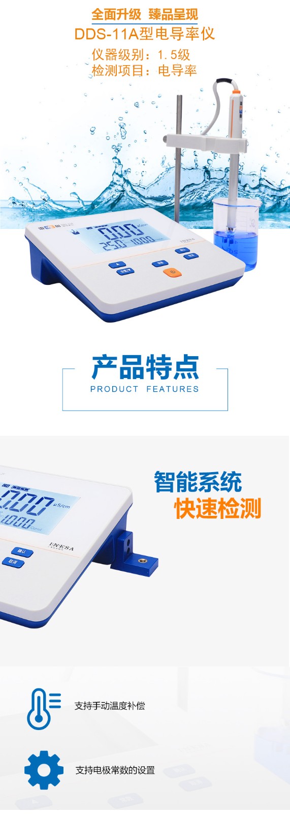 雷磁DDS-11A電導率儀智能系統手動溫度補償電導率測試儀電導儀