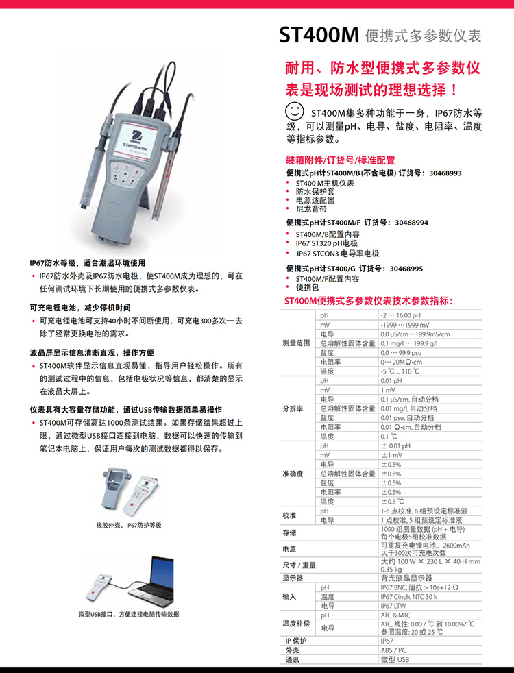 奧豪斯便攜式多參數儀表ST400M耐用防水多參數水質分析儀監測儀