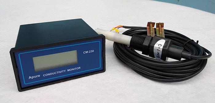 CM-230電導率儀廣泛應用于制藥、電子、化工等行業對工業流程水質的在線監測。它采用了單片機技術,量程間切換自動完成,電極常數及電導率高限報警點通過面板上的按鍵自由設置,是各種中小型純水設備的優良配套儀表。