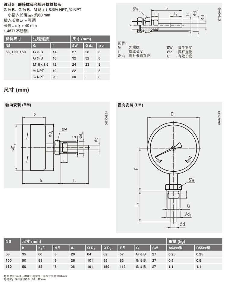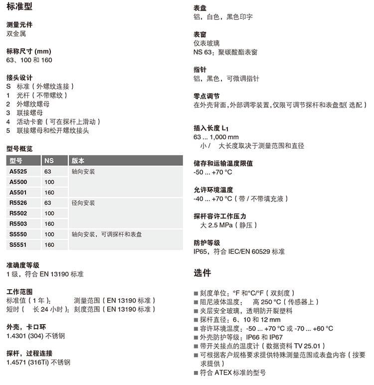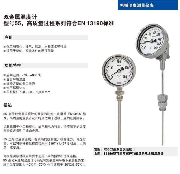 EN13190 全系列溫度計(jì) A52 R52 徑向軸向雙金屬溫度計(jì)
