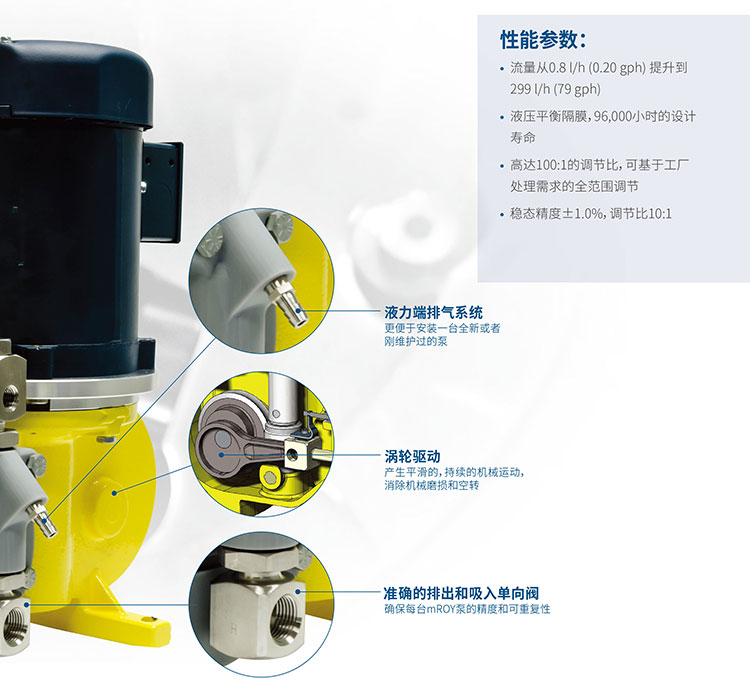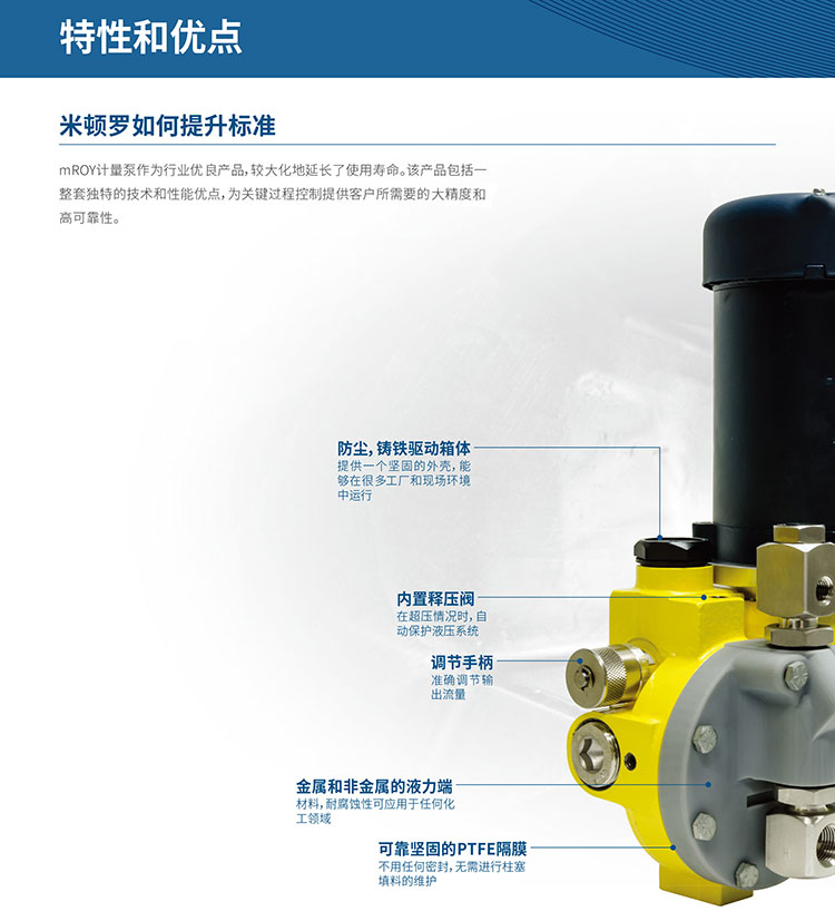 由于體積小巧、結(jié)構(gòu)耐用和性能可靠,mROY計(jì)量泵適用于多種應(yīng)用。