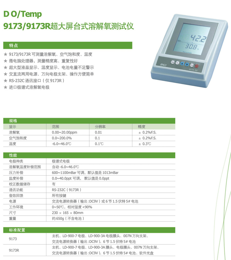 9173R型臺式大屏溶解氧測試儀