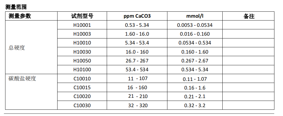 注意:試劑H10030及以上對溫度非常敏感,根據環境溫度校正測試結果可能是必要的。這些試劑為500ml瓶. 低硬