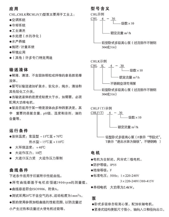 南方CHL,CHLK,CHLF(T)非自吸輕型臥式多級離心泵,葉輪導葉采用不銹鋼板沖壓焊接制成,配加長軸電機,軸向入口和徑向出口。