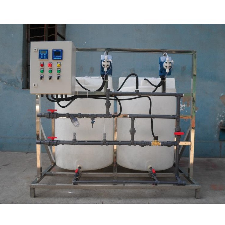 成套加藥裝置和專項成套加藥裝置有多種規格型號,產品包含一罐一泵,一罐兩泵,兩罐兩泵,兩罐三泵,三罐三泵及多罐多泵。系統所使用的配置是根據計量泵的數量和出口來定的,用戶可以根據工藝需要進行選擇,也可依據用戶的特殊需要來設計和生產的非定型產品。