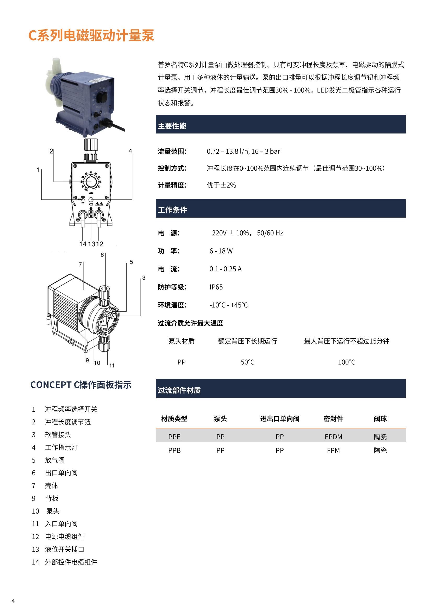 普羅名特電磁隔膜計量泵C0313PP1000A001-產品樣冊