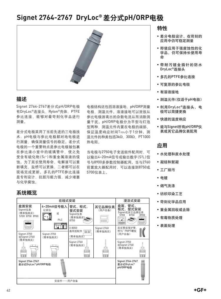GF差分式PH/ORP電極3-2764-2 酸度計(jì)探頭