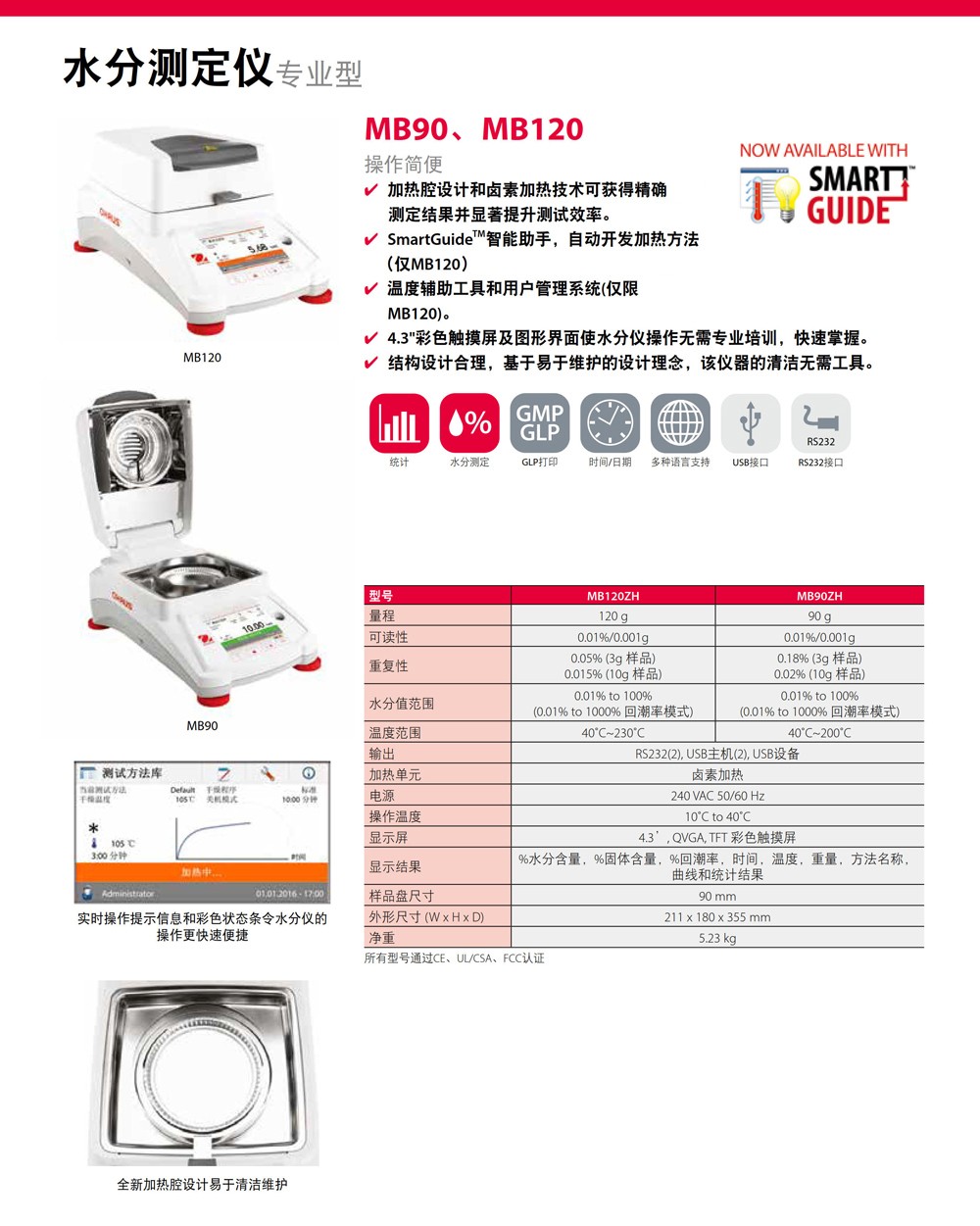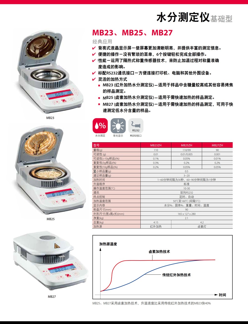 奧豪斯MB系列水分測定儀鹵素加熱水分儀MB25紅外加熱水分檢測儀