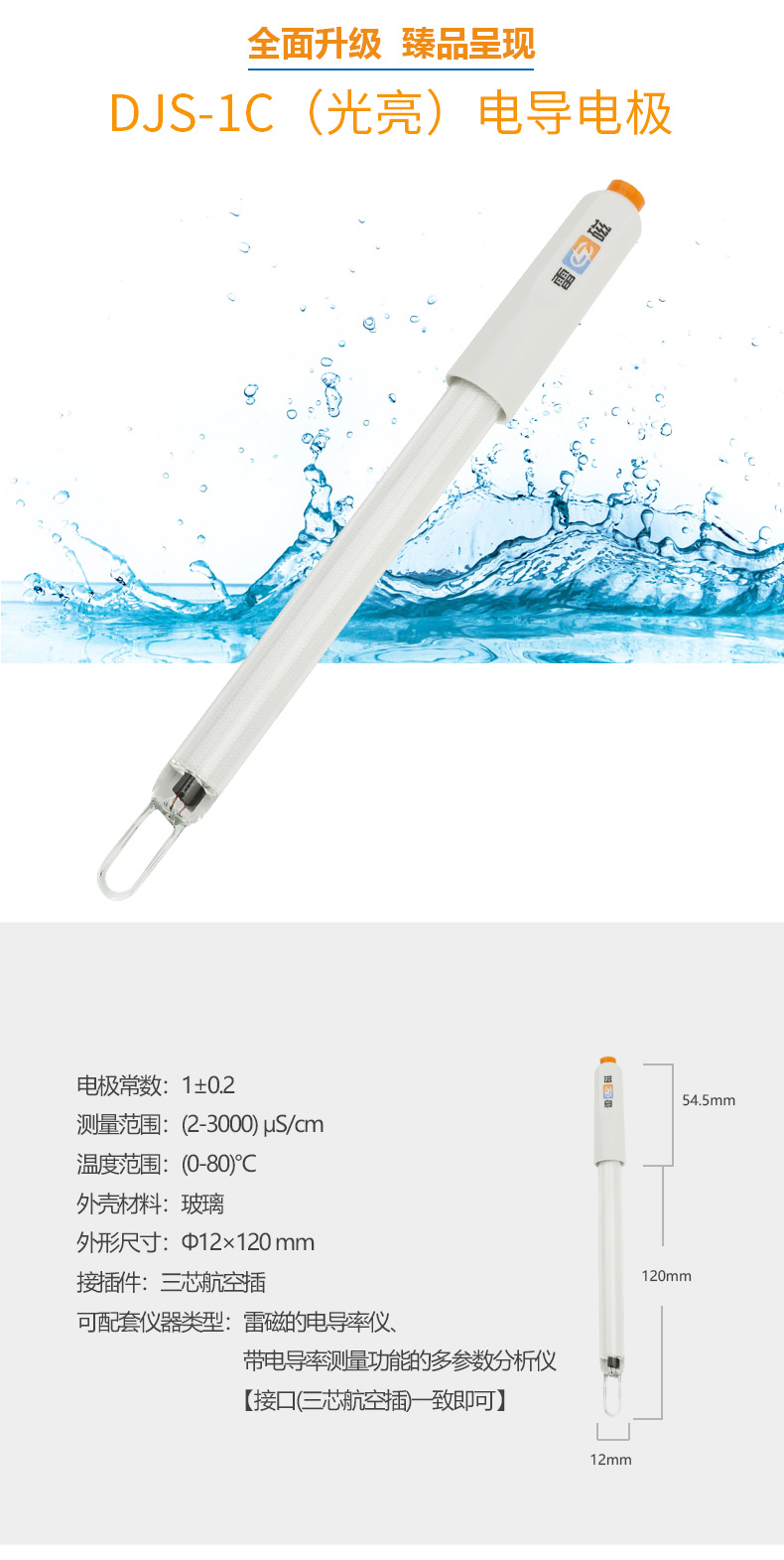 【雷磁】實驗室電導率傳感器DJS-1C型電導電極(光亮)