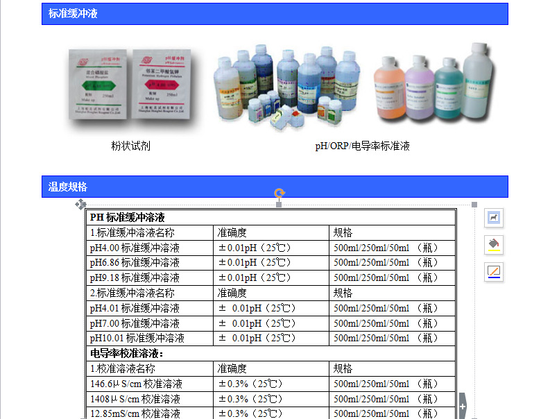 緩沖液與保存液非常重要,尤其對于昂貴的設備,其傳感器(如PH電極)缺乏適當的保養,就無法發揮它 優的功能,比如說使用壽命,精度等。我們提供的校正液均有純度等級 高的試劑,準確稱量,嚴格按照實驗室操作規程配制而成。