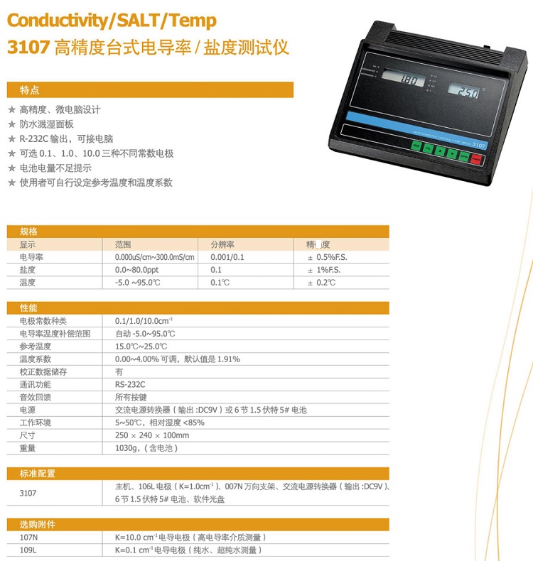 參數:0~300mS/0.01μS,鹽度顯示0~80ppt,RS-232C