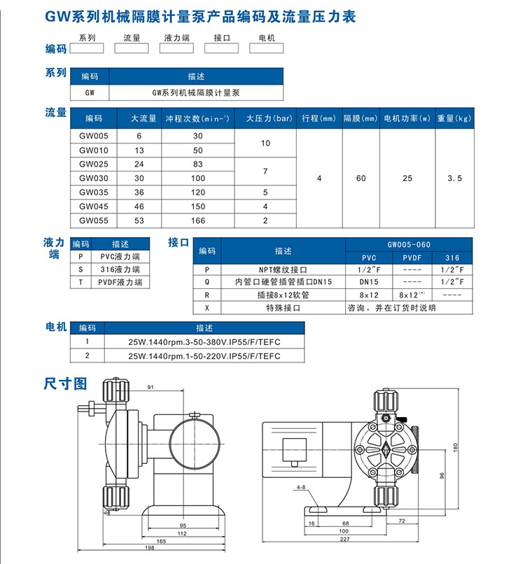 南方GW035加藥泵 隔膜式計量泵 36L 5bar 工程塑料廢水輸送機械泵