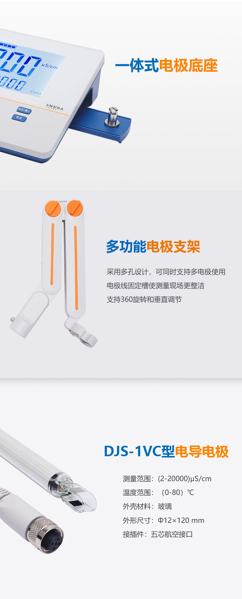 雷磁(leici)DDS-307型臺式電導率儀液晶顯示手動溫度補償電導測試儀器