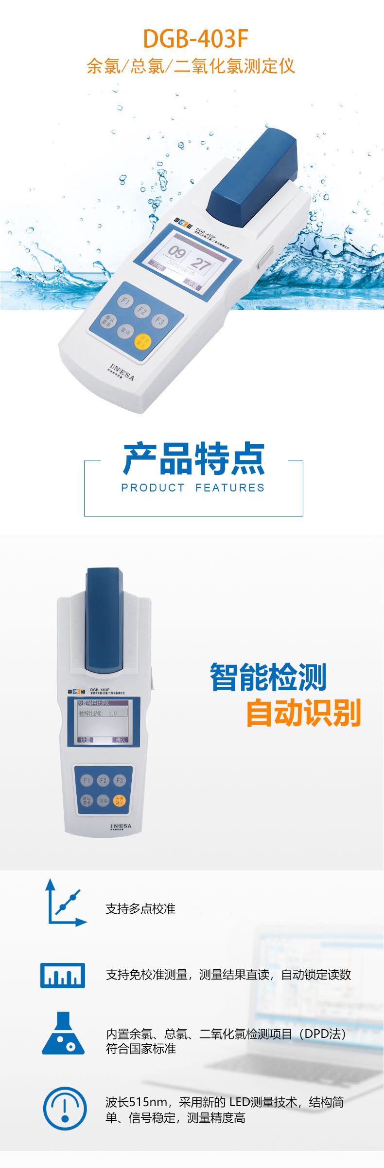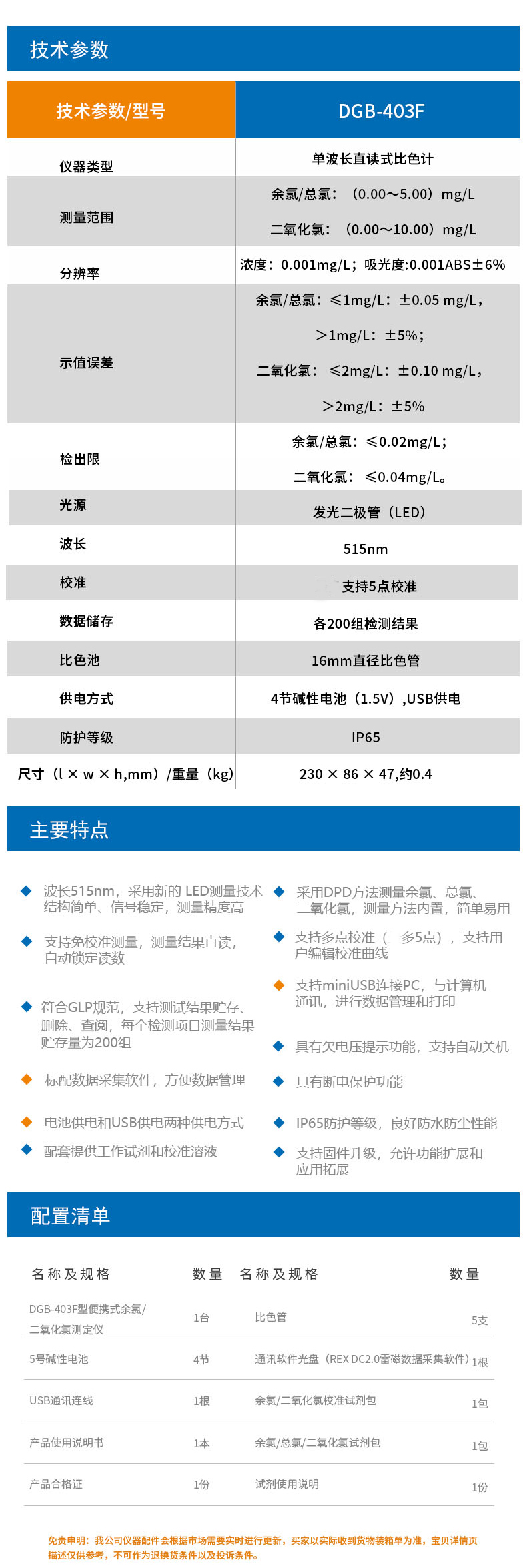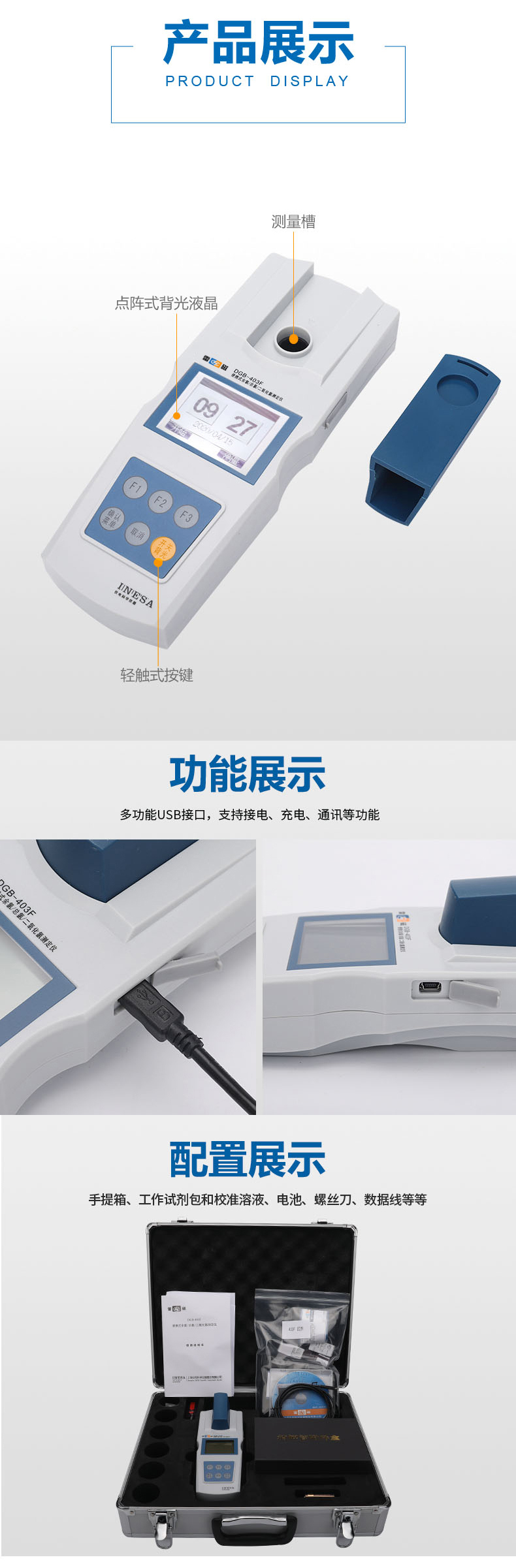 雷磁(leici)水質(zhì)分析儀DGB-403F型便攜式余氯二氧化氯測(cè)定儀標(biāo)配套裝