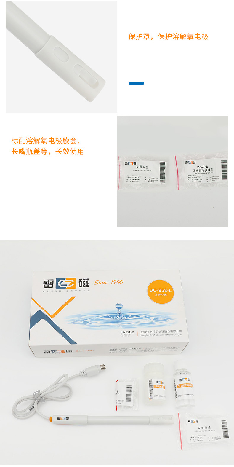 雷磁(leici)溶解氧電極DO-958-L 實驗室電極傳感器探頭ABS外殼材質電極