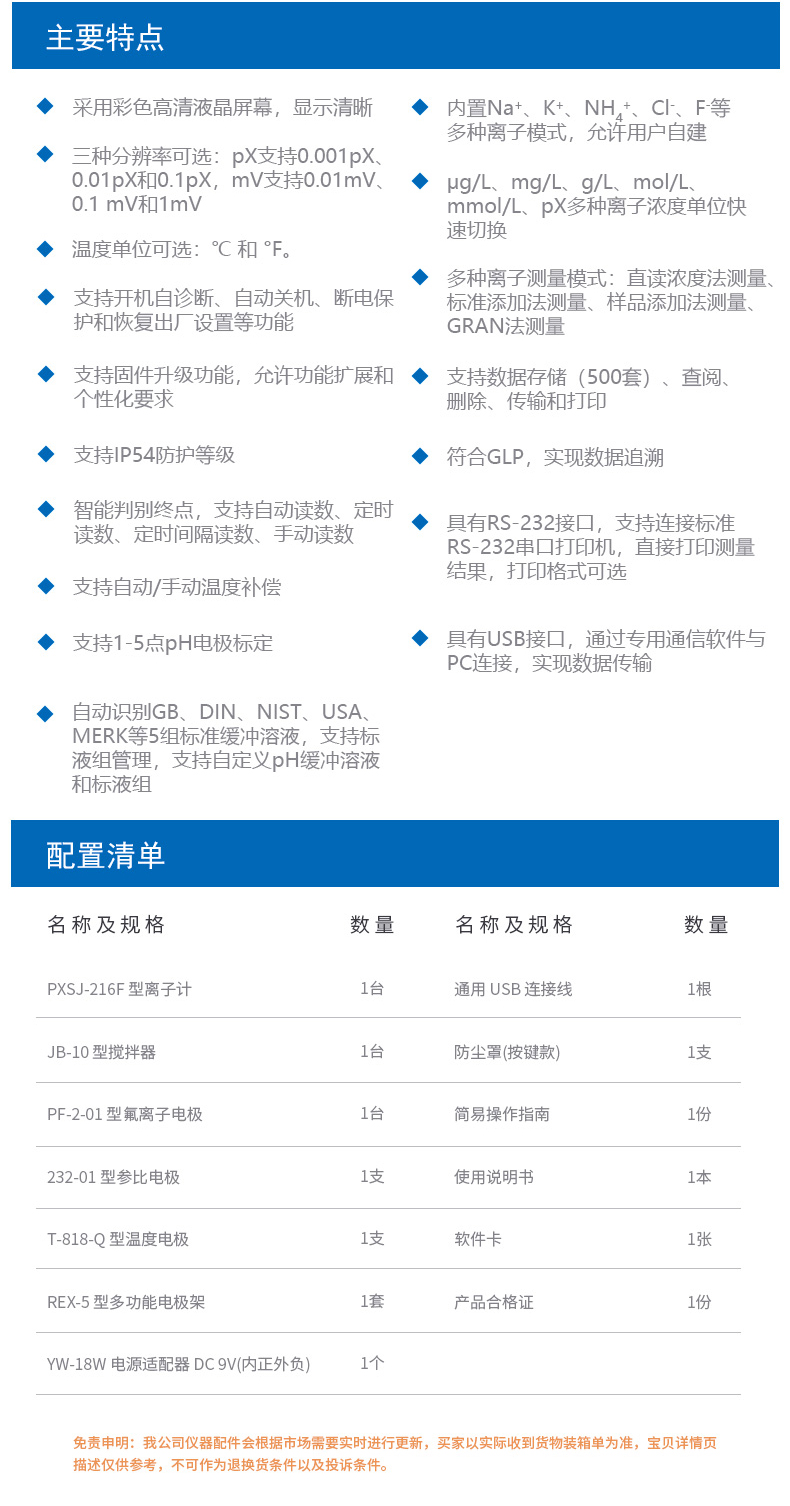 雷磁(leici)PXSJ-216F型離子計液晶屏幕自動手動溫度補償多種離子模式