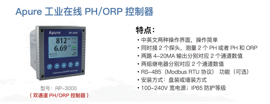 大表,彩屏,可同時測量PH和ORP的數值