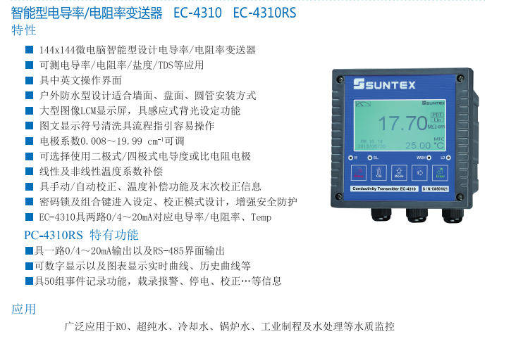 (SUNTEX)智能型電導率儀EC-4310  EC-4310 RS