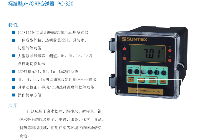 SUNTEX  標準型pH/ORP變送器PC-320