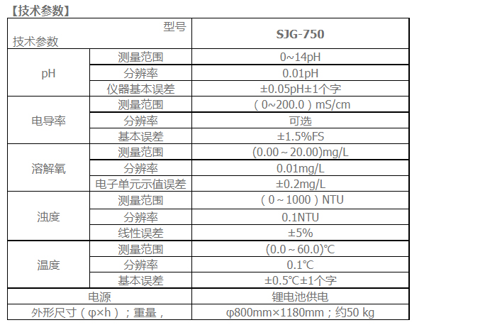 SJG-750型地表水多參數(shù)監(jiān)測儀,浮標(biāo)式結(jié)構(gòu),測量數(shù)據(jù)無線傳輸,適用于在河道水面上安裝作業(yè)。可同時監(jiān)測pH、電導(dǎo)率、溶解氧、濁度、溫度等參數(shù),為地表水水質(zhì)管理提供可靠數(shù)據(jù)。