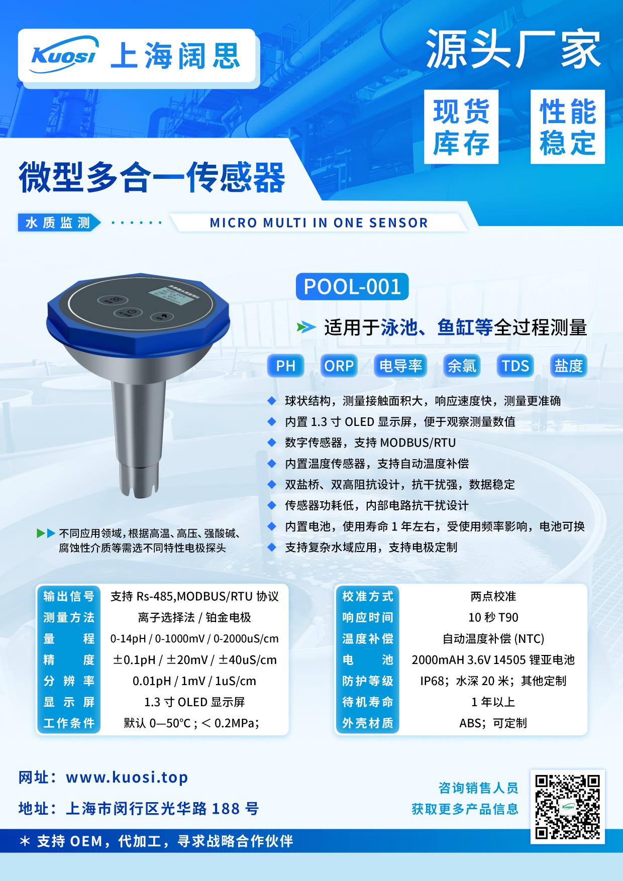 微型多合一傳感器PH,ORP,電導率,余氯,TDS,鹽度