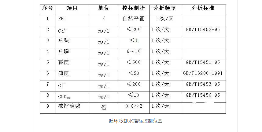 三、循環冷卻水指標控制范圍